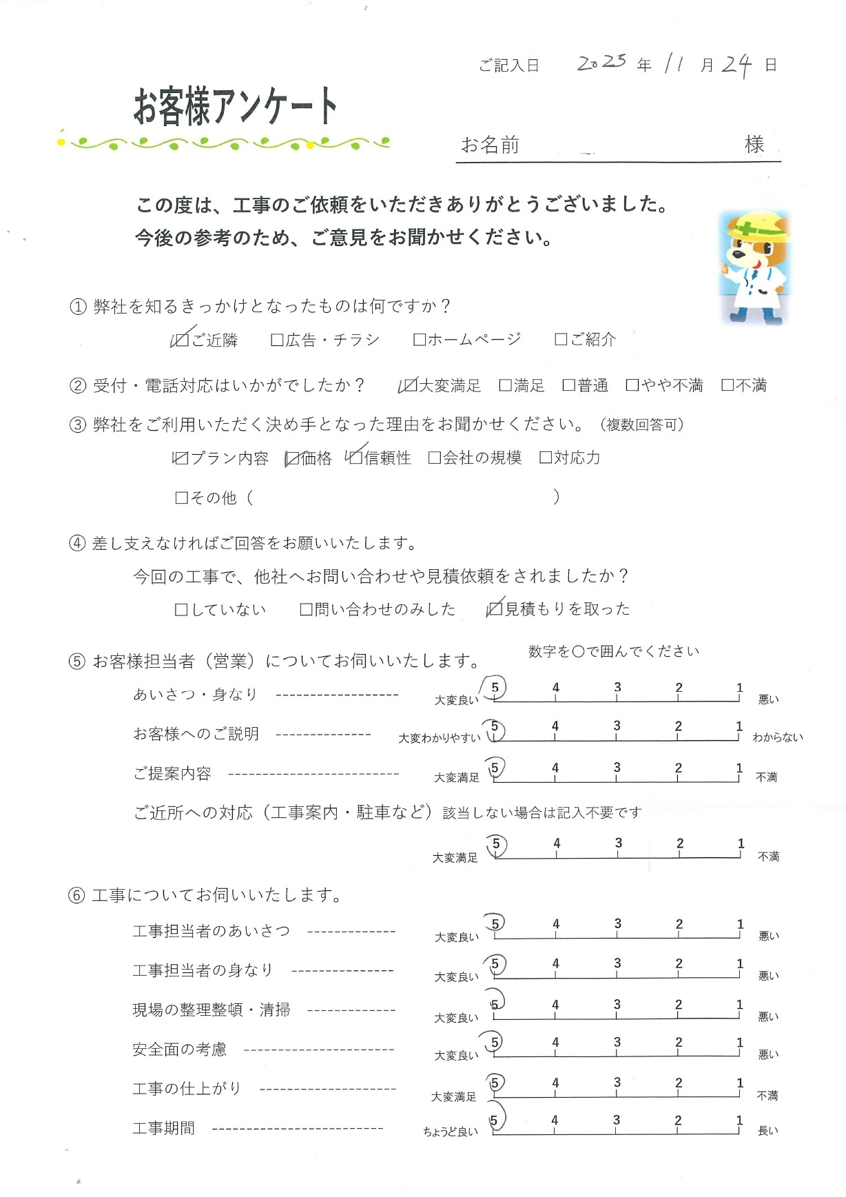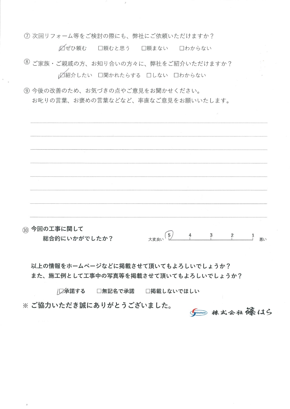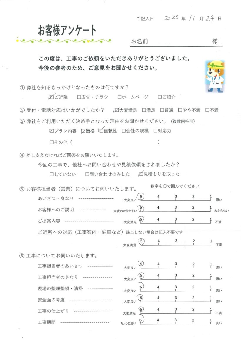 今回の工事に関して総合的にいかがでしたか?