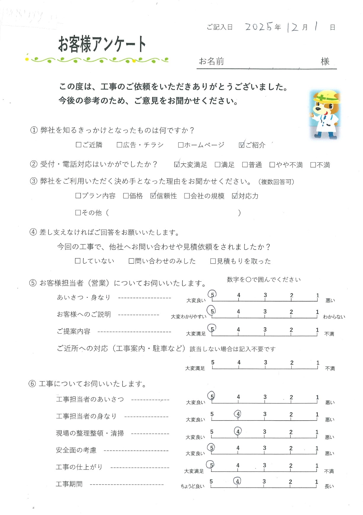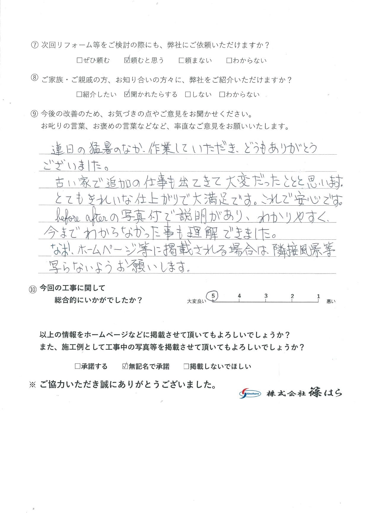 - 今回の工事に関して総合的にいかがでしたか?